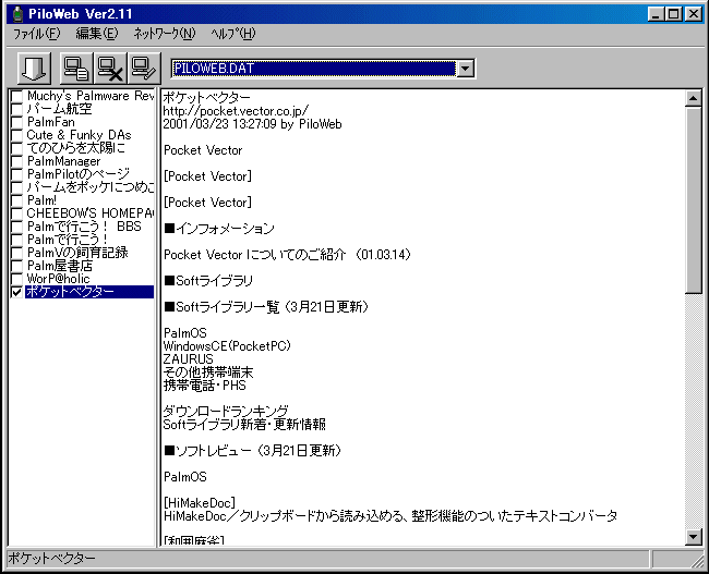Pocket Vector ソフトニュース - 2001.03.28 |