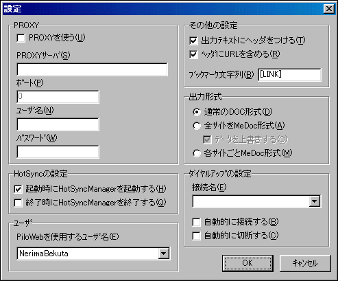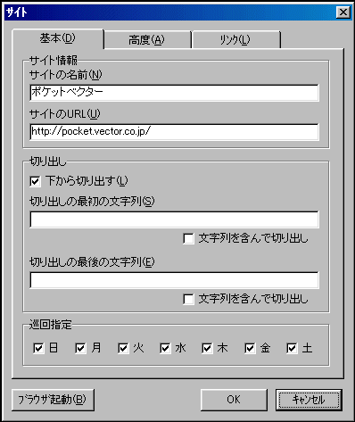 《スクリーンショット》 サイト登録/切り出しの文字列/巡回の曜日など詳細な設定も可能 《スクリーンショット》 登録サイトからのリンクもたどれるので、新着情報のチェックも容易にできる 《スクリーンショット》 PROXY/出力形式/HotSyncなど、ユーザの環境に合わせた設定も可能だ 【作 者】 関根 元和 さん 【作者のホームページ】 http://hp.vector.co.jp/authors/VA011708/ 【動作に必要なソフト】 DOCリーダー |