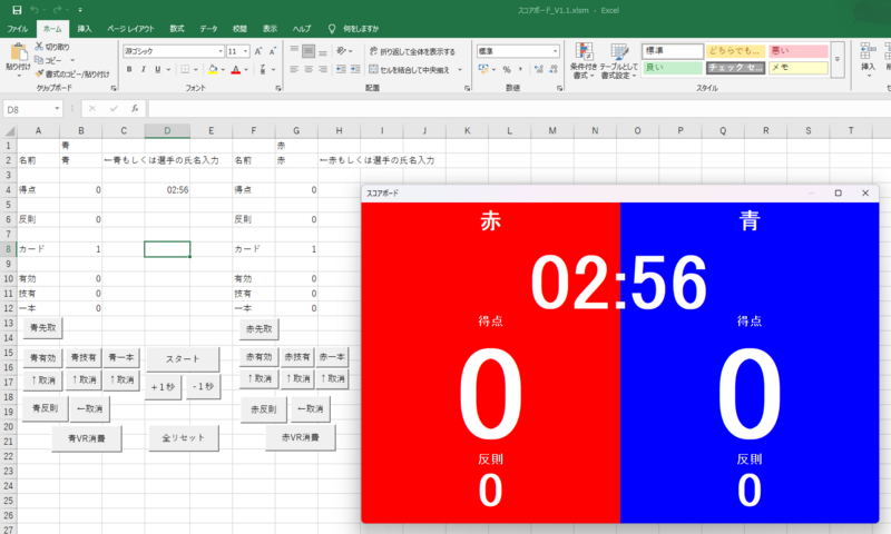 空手道(組手競技)専用に特化した、Excel VBAベースのスコアボードアプリ