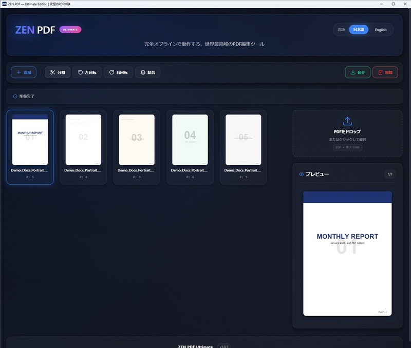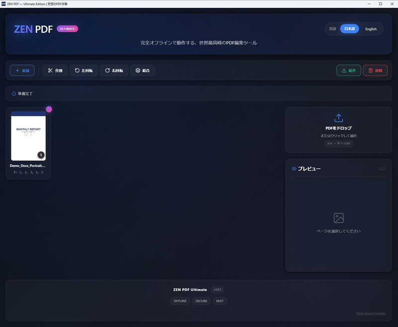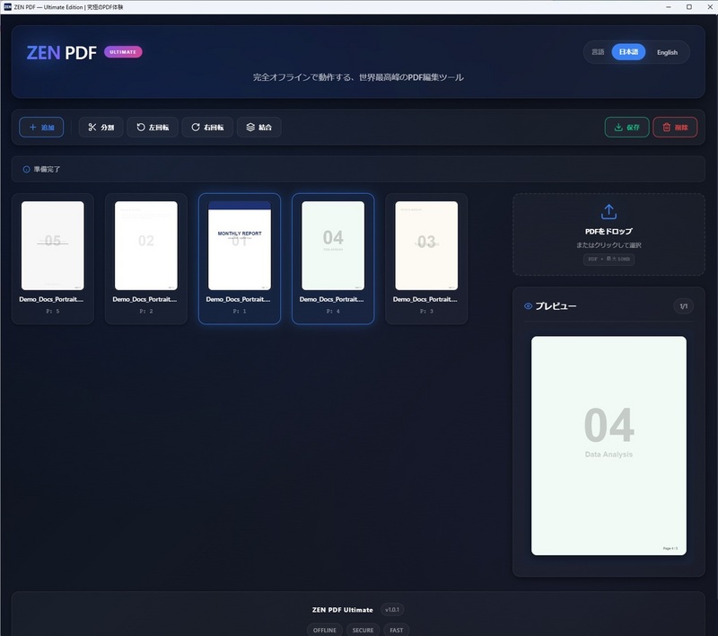 ネット接続不要 完全オフライン・インストール不要のPDF結合・分割ツール